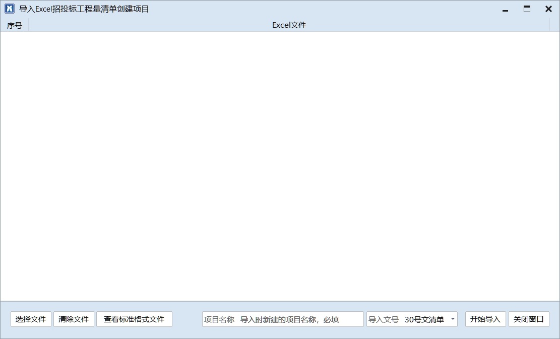 详细标准招标清单格式,请点击“查看标准格式文件”按钮进行查看参考,如果格式不同,必须按标准格式调整为完全相同后,再执行导入。